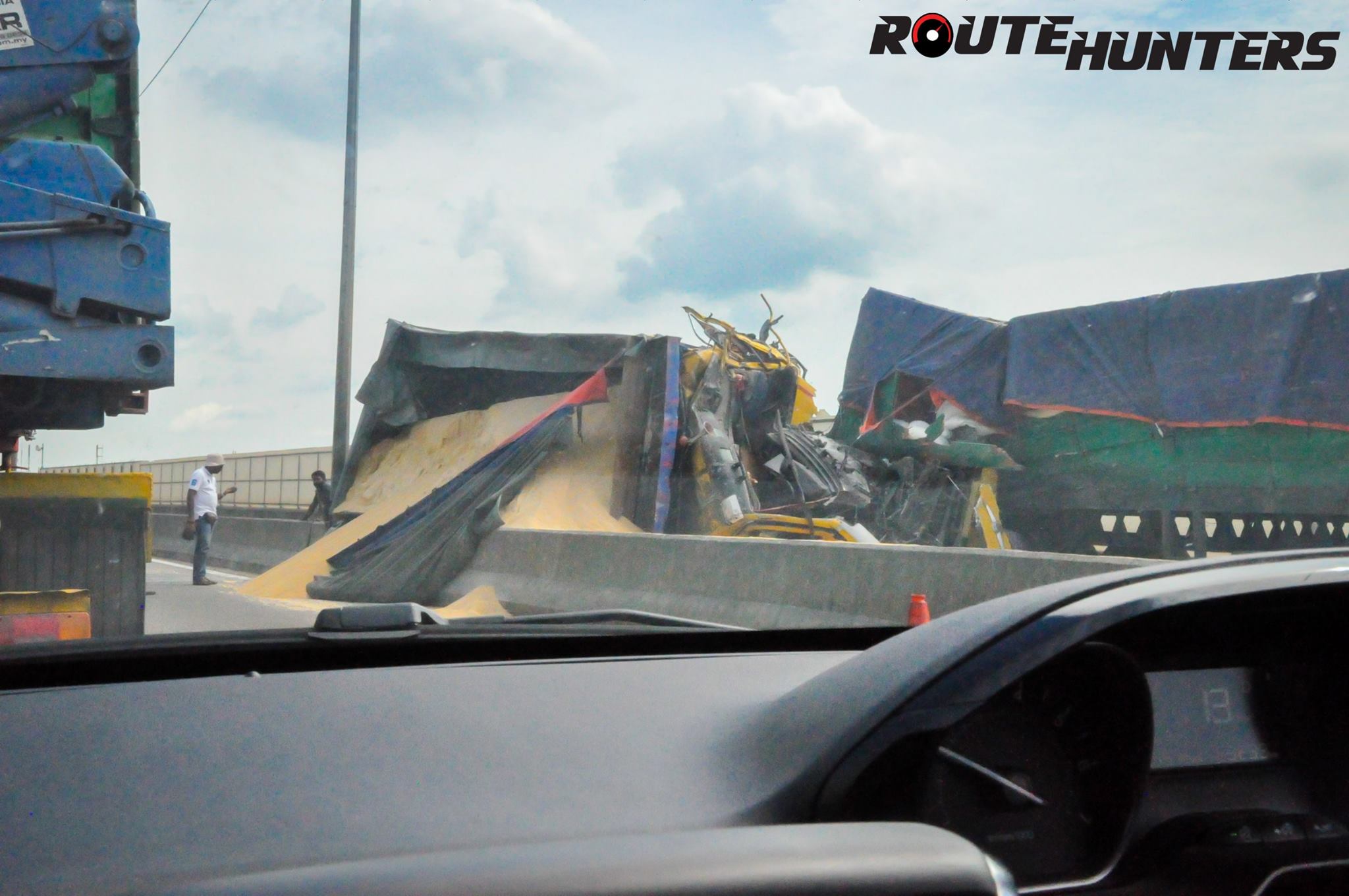 So dreary, tired, fatigued, we headed into Port Klang to proceed toward Pulau Indah and the SKVE. Unfortunately whilst on the overhead bridge that links KESAS to the Shapadu highway, the fuel light comes on. To add insult to injury, there was an accident where a trailer had dumped its cargo on the road. We were done for right here. Since the start stop system doesn’t work when the weather is hot, I resorted to manually turning off the engine whilst waiting in traffic.