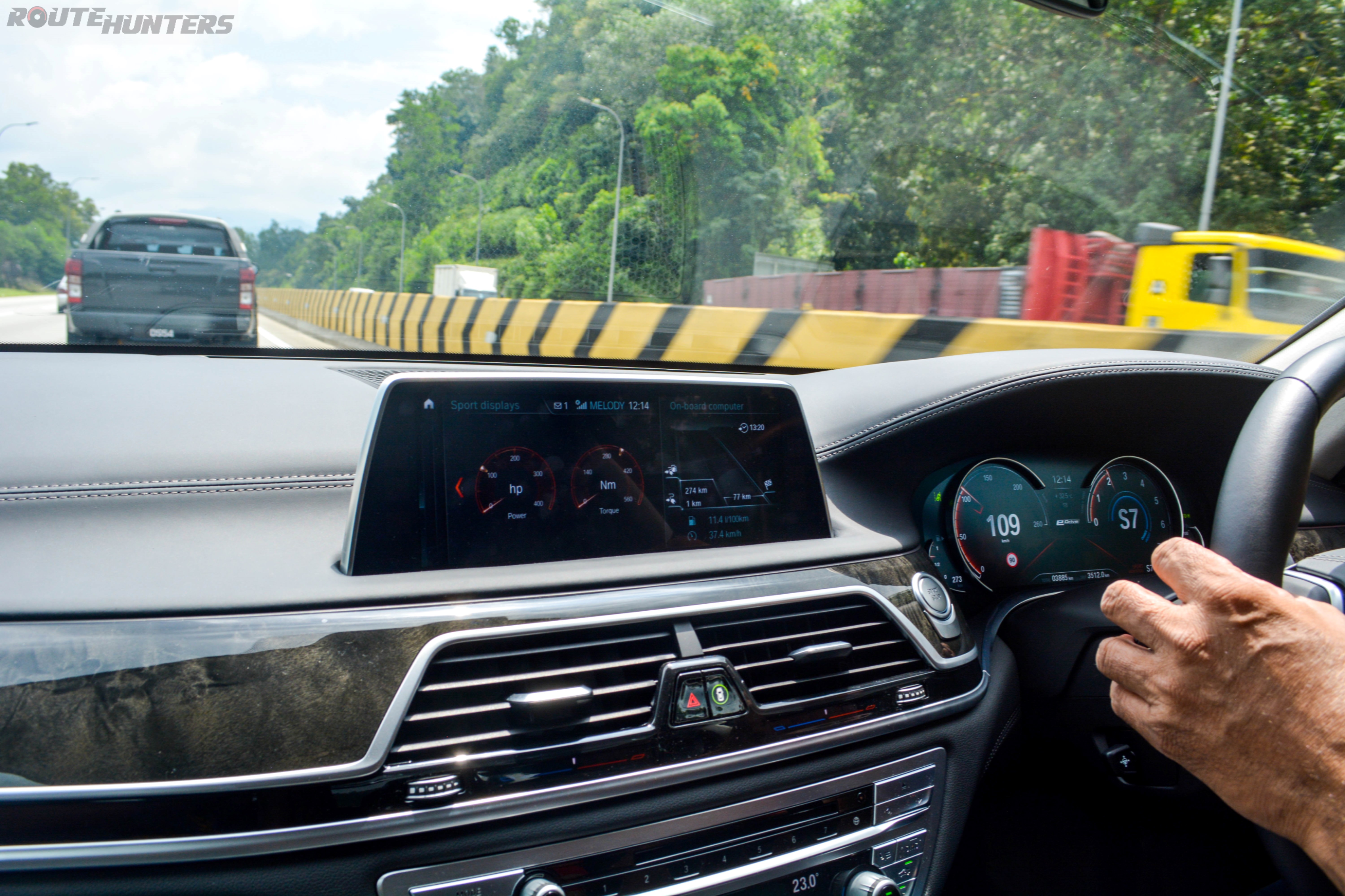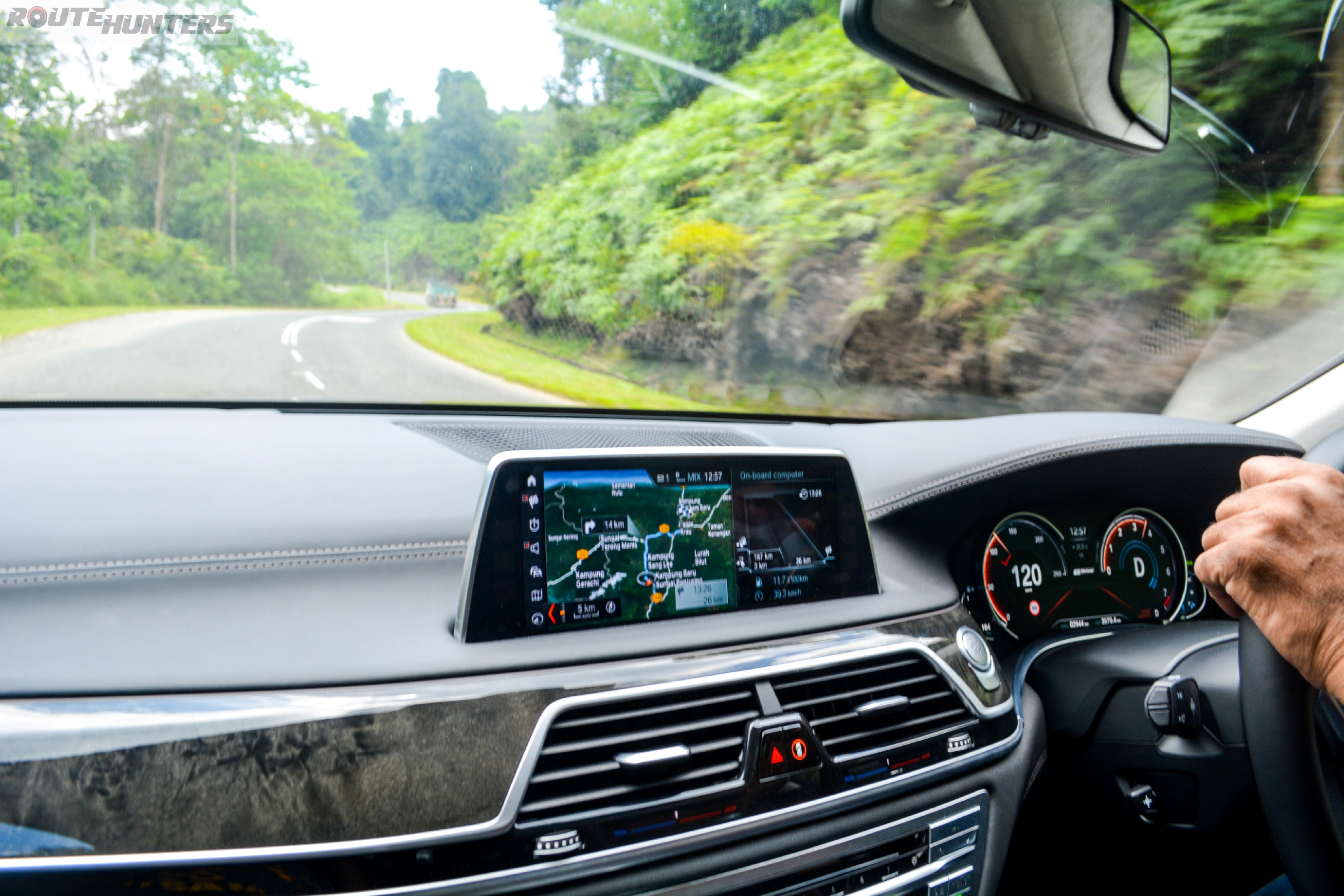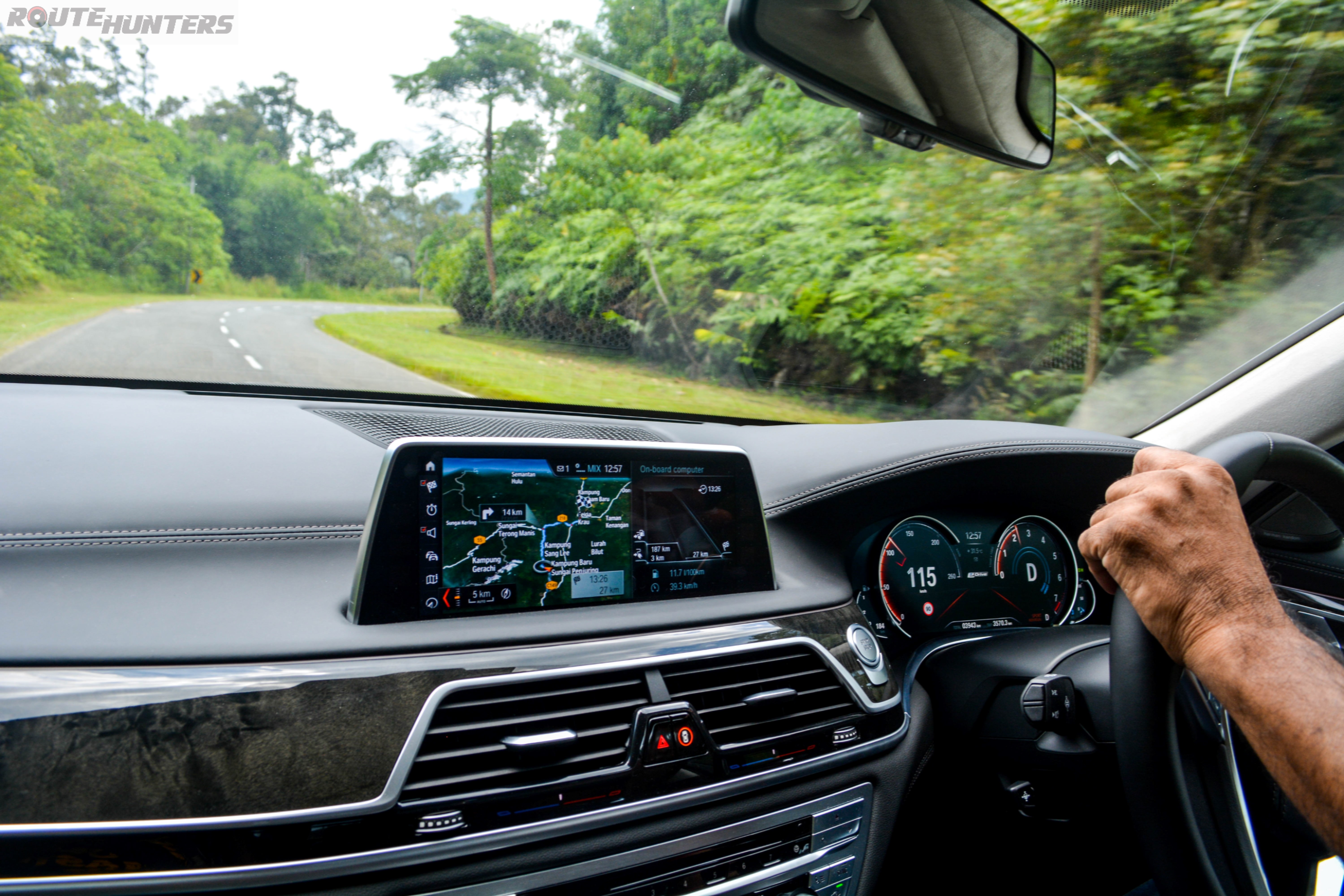Our 7 series was not exactly light. On top of the battery pack and air suspension system for the rear, the car was also fully loaded with 2 Route Hunters exceeding the 100kg mark. That did not stop our Flying Sikh from ‘flying’ through this 60km stretch of highway. We reached the other side of the Titiwangsa mountain range over at Bentong in virtually no time after setting off from Gombak.